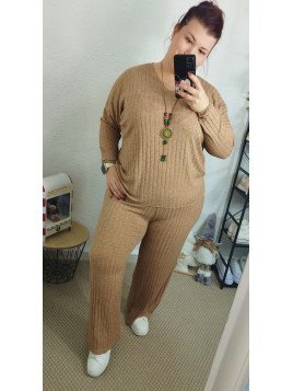 Conjunto canalé de punto suave en color camel