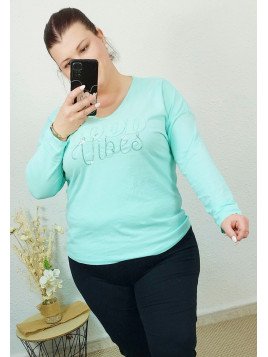 Camiseta de manga larga en tono verde agua con estampado frontal “Good Vibes” con acabado brillante. Cómoda, femenina y perfecta para dar un toque especial a tus looks diarios. Talla única hasta una 46/48.